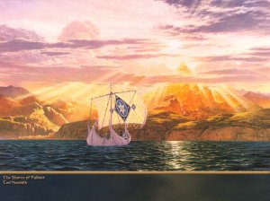 I’m sure any of you who are fans of Tolkien’s books and saw the Lord Of The Rings movies, noticed that Gandalf’s description to Pippin of “the after-life” is taken right out of the scene at the end of the trilogy, when the boat carrying Frodo, Bilbo, Gandalf and company reaches the shores of Valinor. At first I thought it was kind of cheesy, but after thinking about it, I suppose the scene from the final chapter of Return of the King could be seen as a metaphor for death.